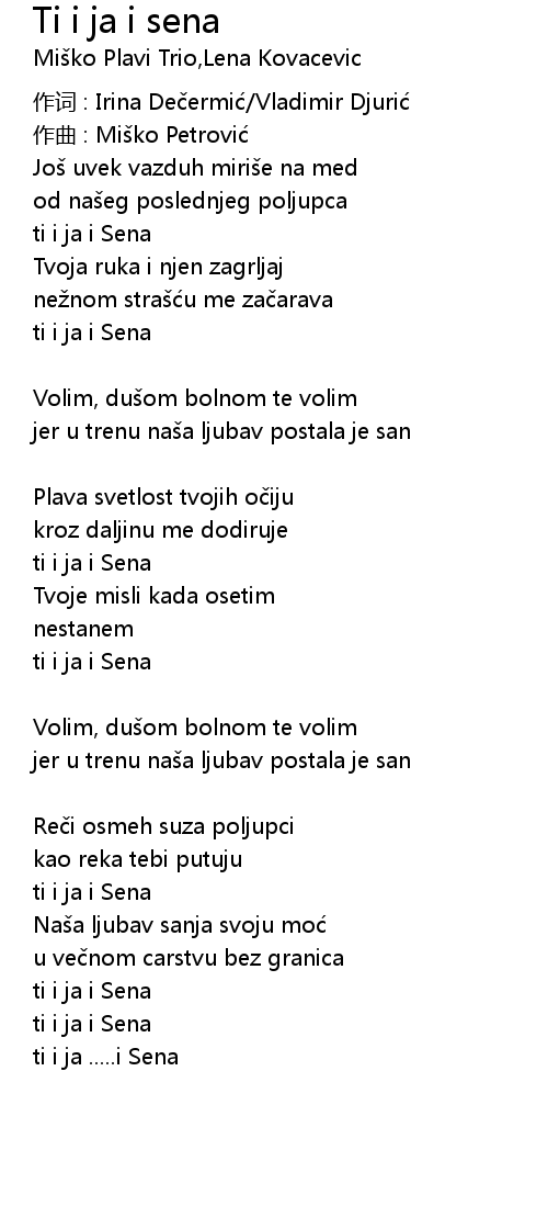 | 作词 : Irina Dečermić/Vladimir Djurić | |
