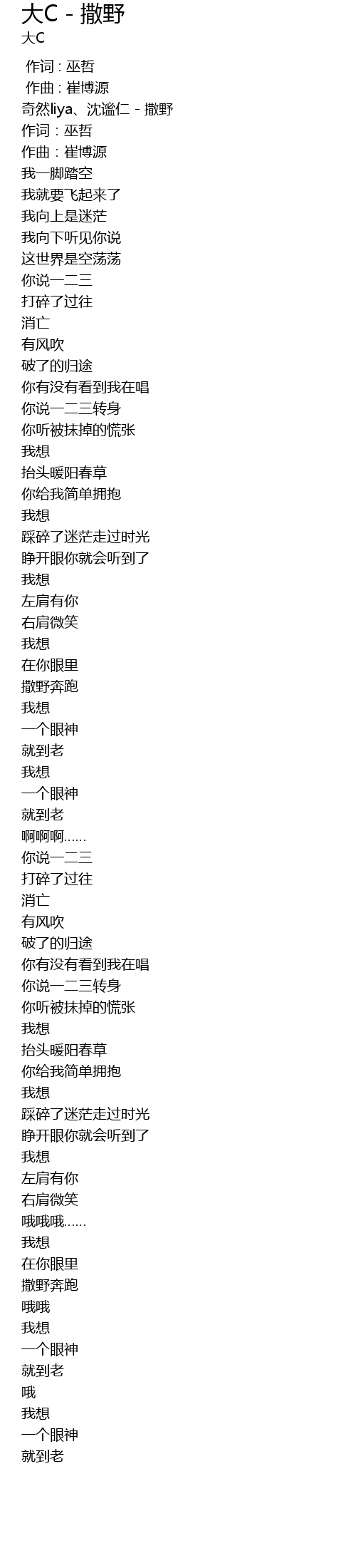 | [00:00.00] | 奇然liya、沈谧仁 - 撒野 |