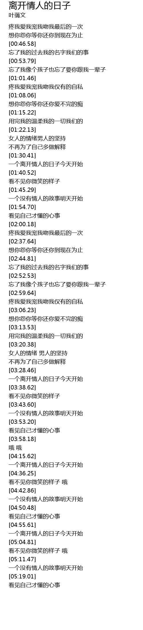 | [04:58.46] | 一个离开情人的日子今天开始 |