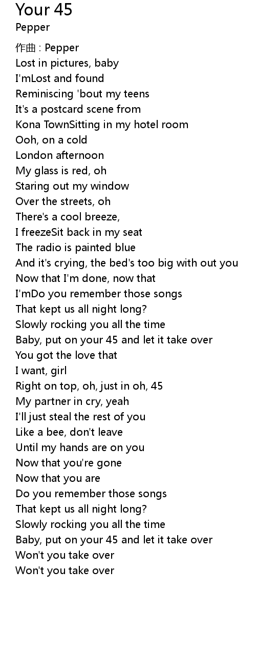 | Baby, put on your 45 and let it take over | |
