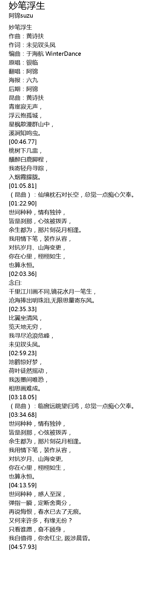| [02:04.58] | 千里江川画不同,镜花水月一笔生, |