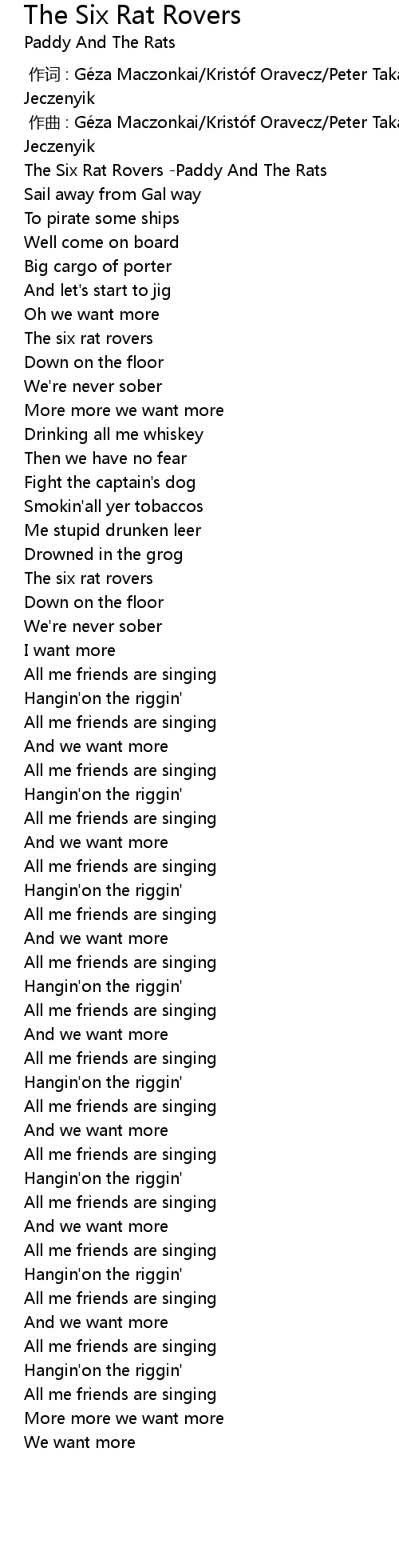 | [00:00.381] | The Six Rat Rovers Paddy And The Rats |
