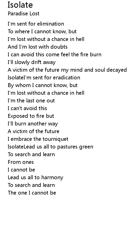 IsolateI'm sent for eradication |