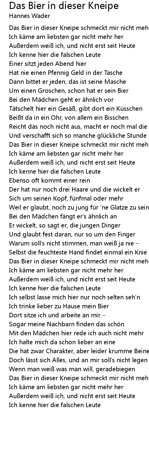 | Song | Das Bier in dieser Kneipe |