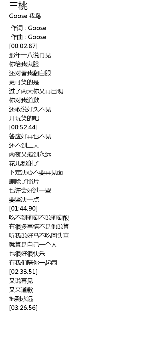 | [00:00.000] | 作词 : Goose |