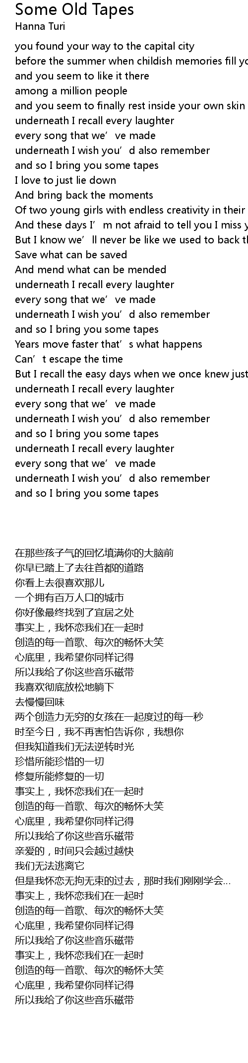 | Song | Some Old Tapes |