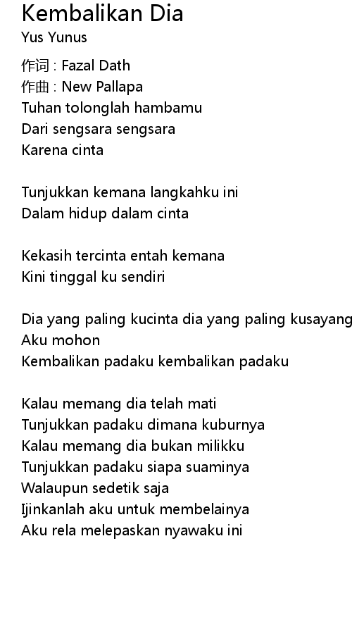 | Song | Kembalikan Dia |