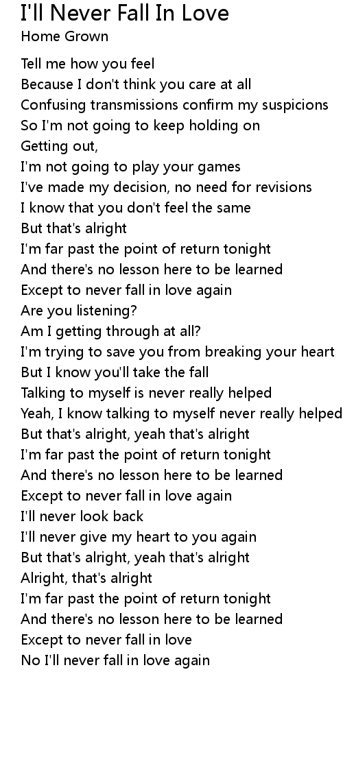 Except to never fall in love |