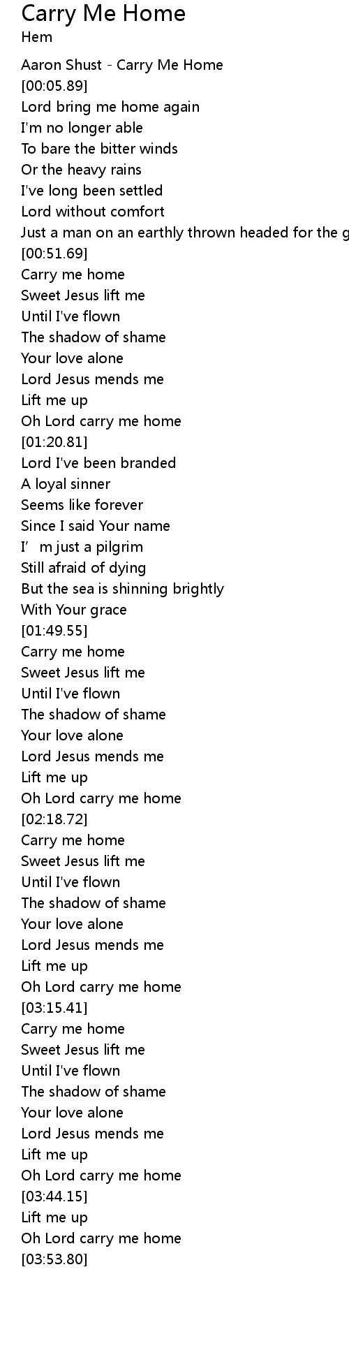 | [00:01.12] | Aaron Shust Carry Me Home |