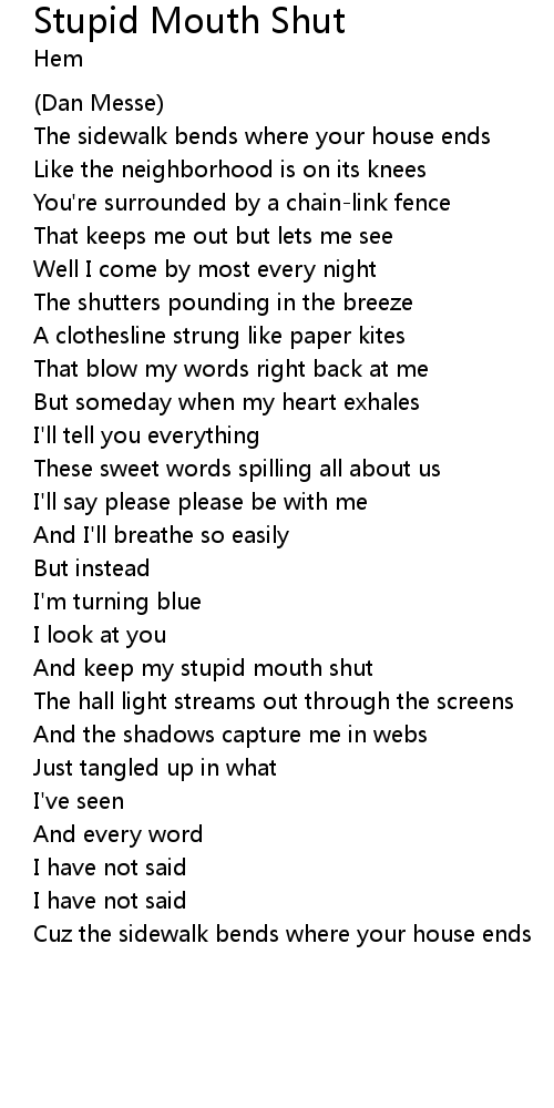 And keep my stupid mouth shut |