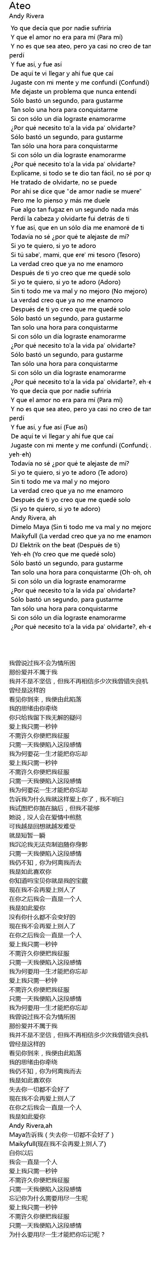 | [02:27.900] | Jugaste con mi mente y me confundí Confundí Andy Rivera, ah yeheh |