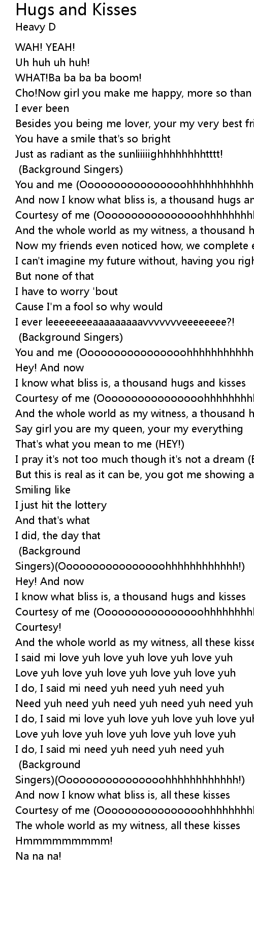 | Need yuh need yuh need yuh need yuh need yuh[Hook: Heavy D] (Background Singers)(Oooooooooooooooohhhhhhhhhhhh!) | |