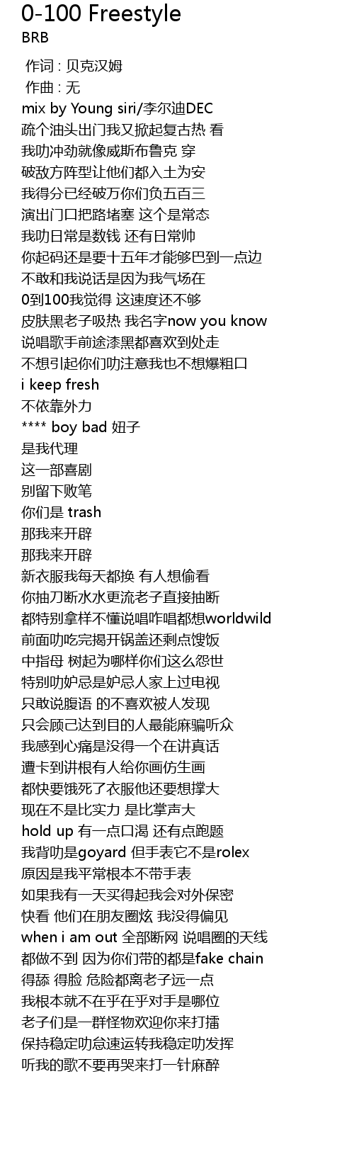 | Song | 0-100 Freestyle |