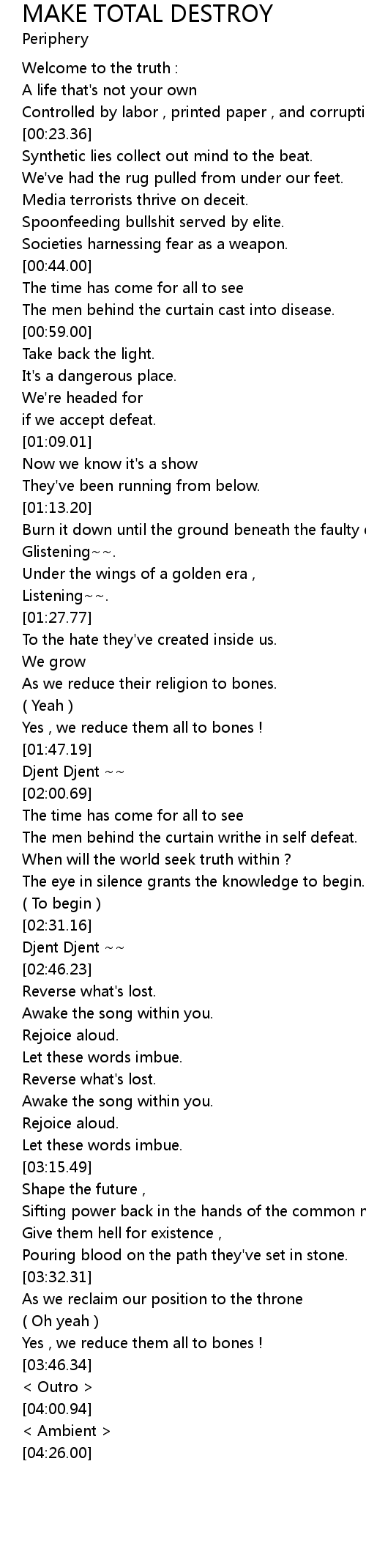 [00:23.86] Synthetic lies collect out mind to the beat.