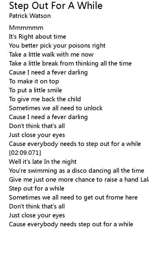 Step Out For A While Lyrics