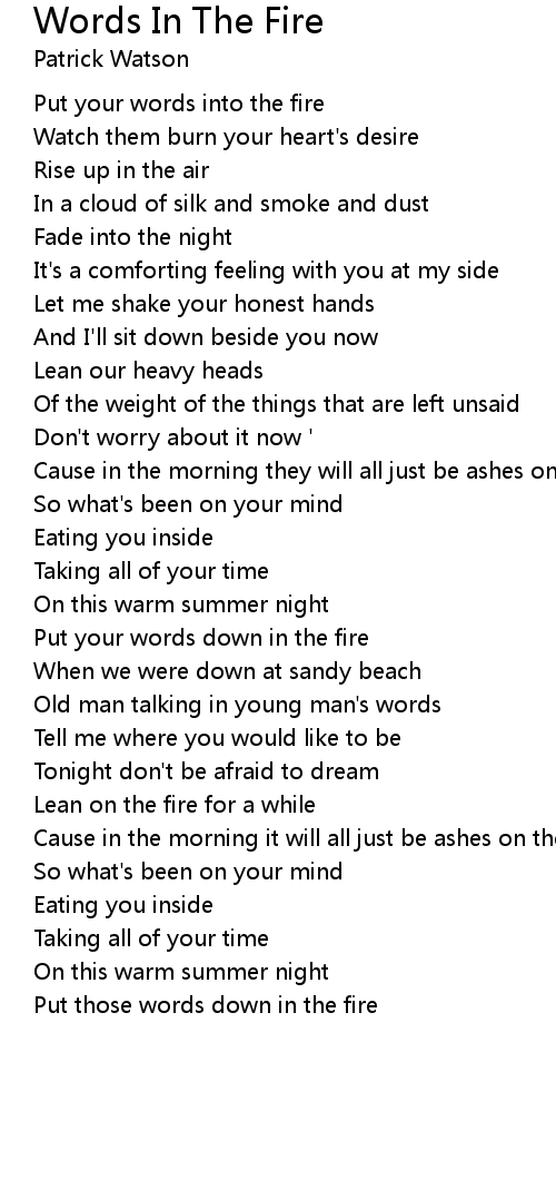 Put your words down in the fire |