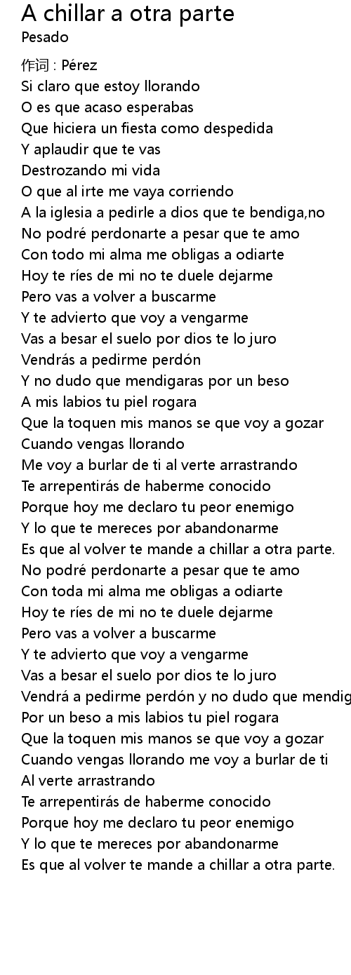| Es que al volver te mande a chillar a otra parte. | |