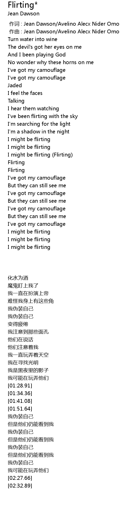 | [00:00.000] | 作词 : Jean Dawson/Avelino Alecx Nider Omo |