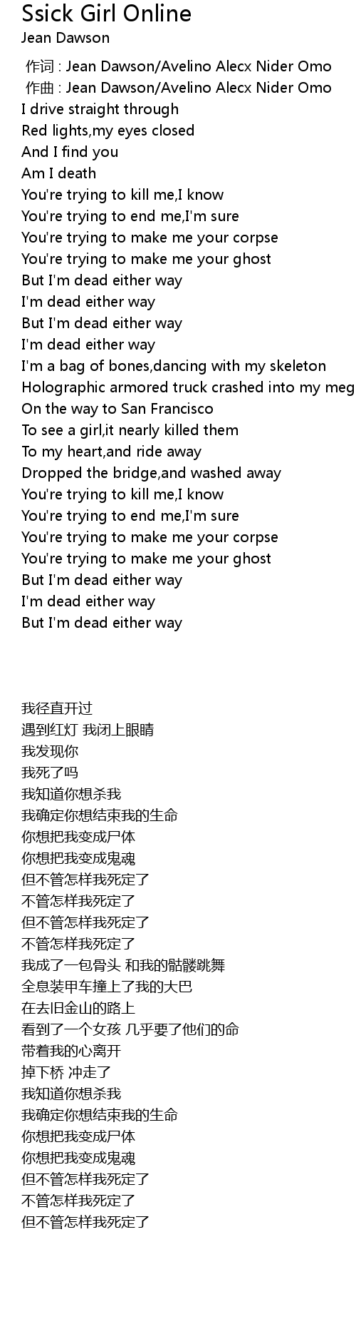 | [00:00.000] | 作词 : Jean Dawson/Avelino Alecx Nider Omo |