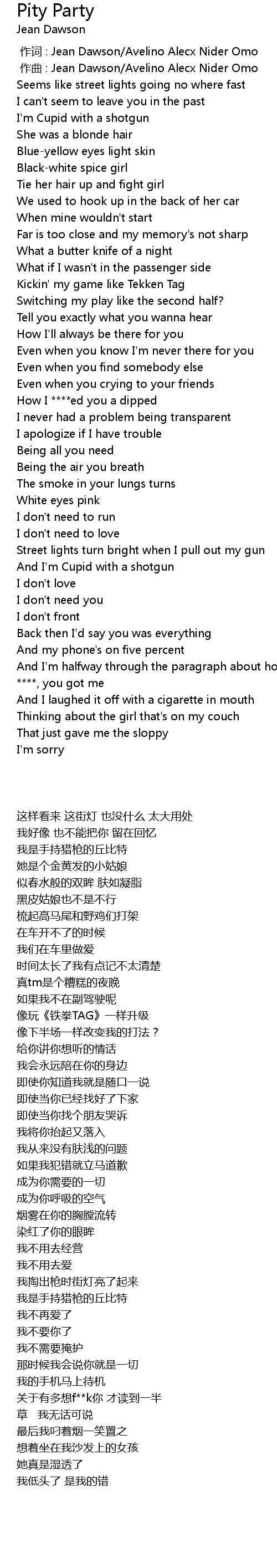 | [00:01.000] | zuo qu : Jean Dawson Avelino Alecx Nider Omo |