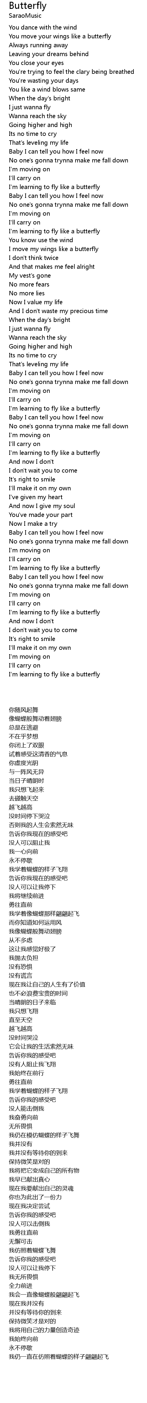 I'm learning to fly like a butterfly |