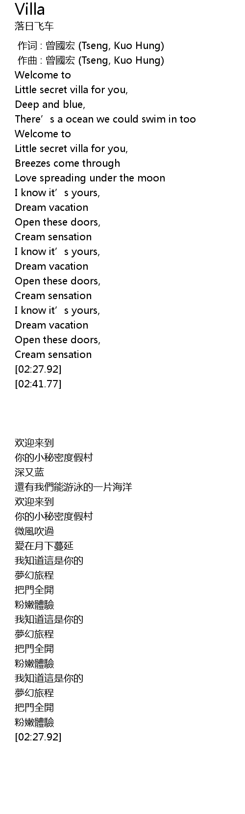 | [02:12.11] | Dream vacation |