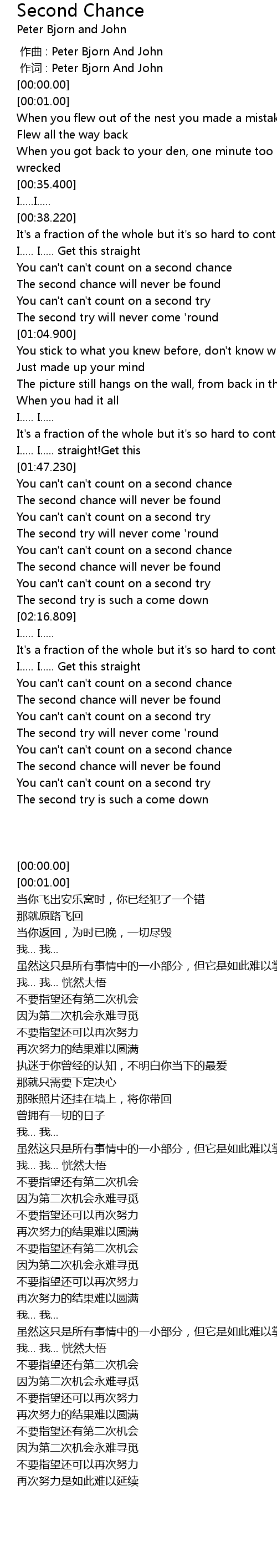 | [00:00.00] | 作词 : Peter Bjorn And John |