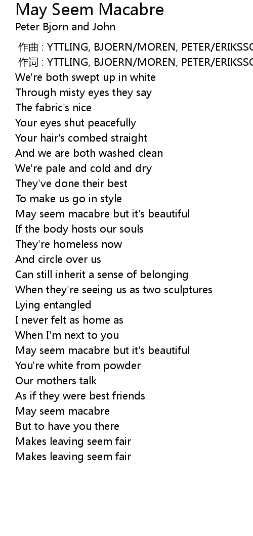 | [02:19.65] | May seem macabre but it' s beautiful |