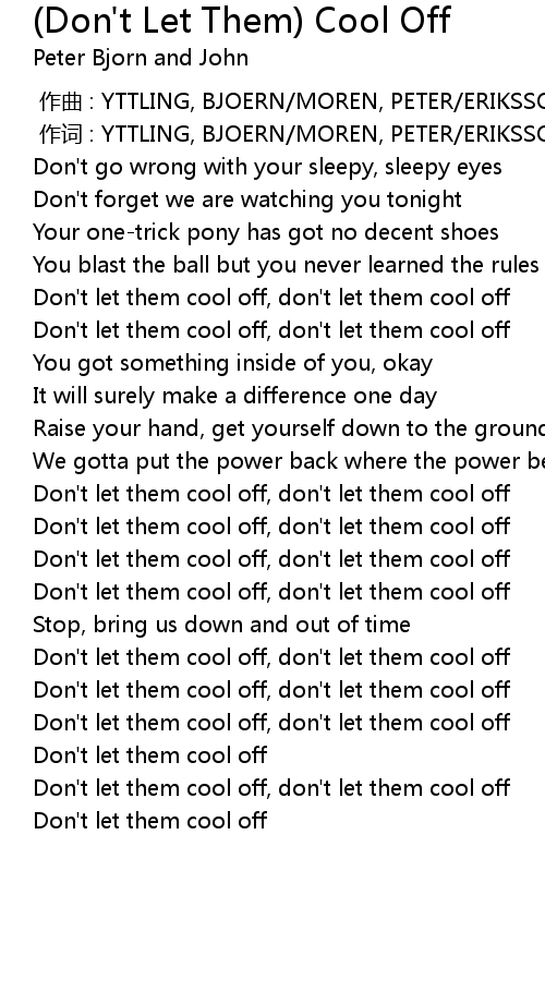 | [00:24.50] | Don't let them cool off, don't let them cool off |