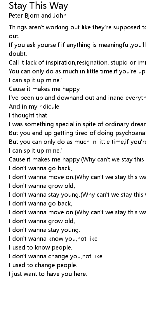 Cause it makes me happy.(Why can't we stay this way?) |