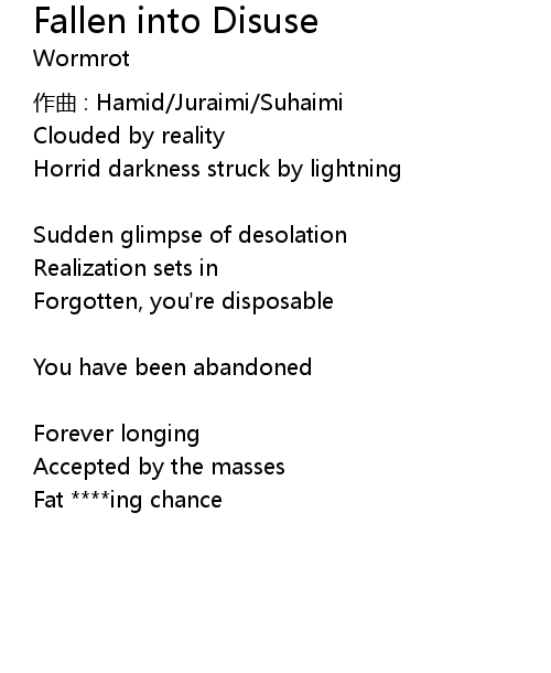 | Song | Fallen into Disuse |