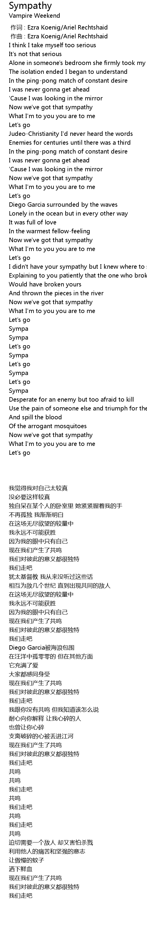 | [00:00.005] | zuo qu : Ezra Koenig Ariel Rechtshaid |