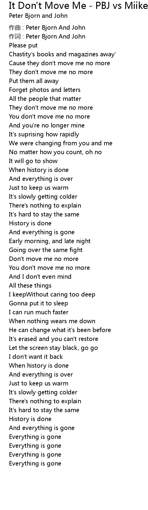 | Song | It Don't Move Me - PBJ vs Miike Snow Remix |