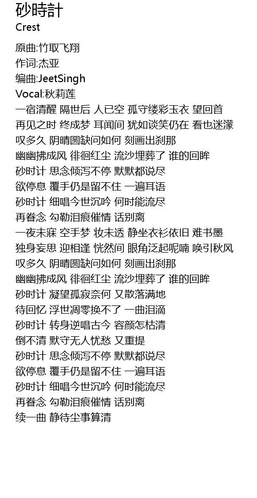 | [01:06.02] | 砂时计 思念倾泻不停 默默都说尽 |
