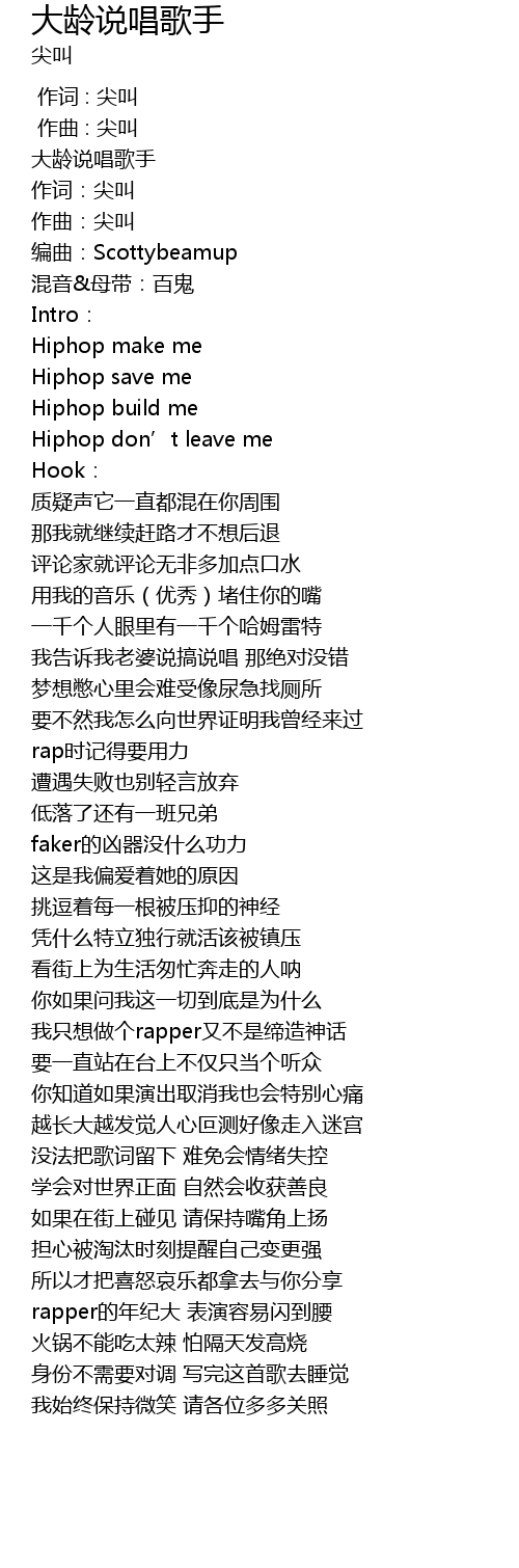 | [00:02.455] | 大龄说唱歌手 |