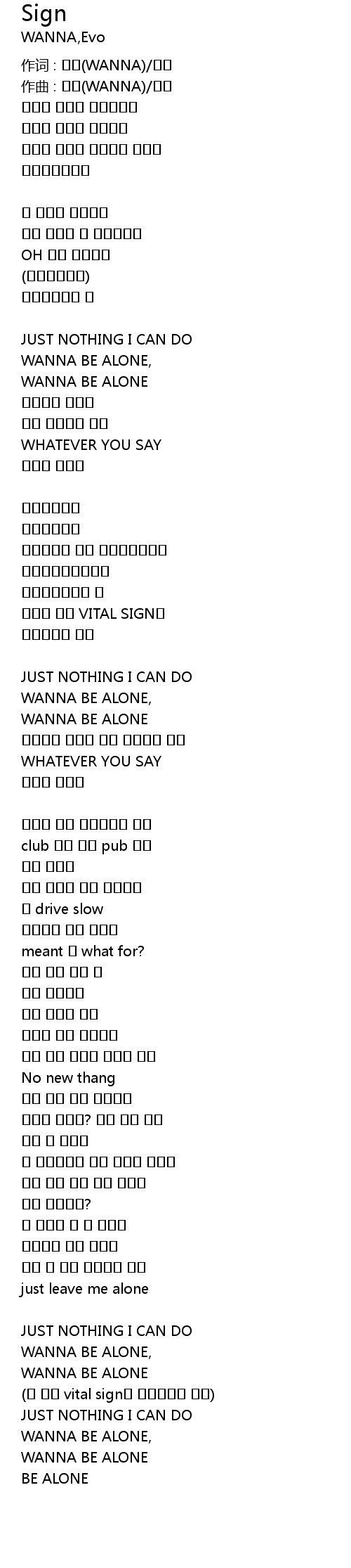 | WANNA BE ALONE, | |