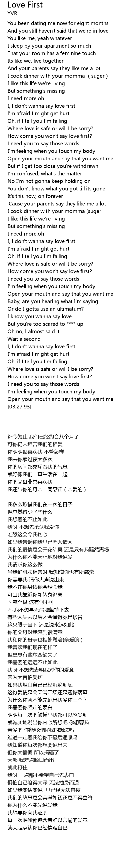 | [00:49.94] | I, I don't wanna say love first |