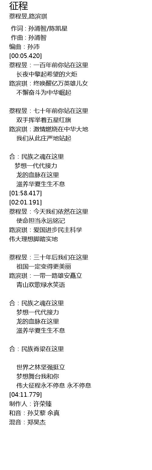 | [03:58.233] | 伟大征程永不停息 永不停息 |