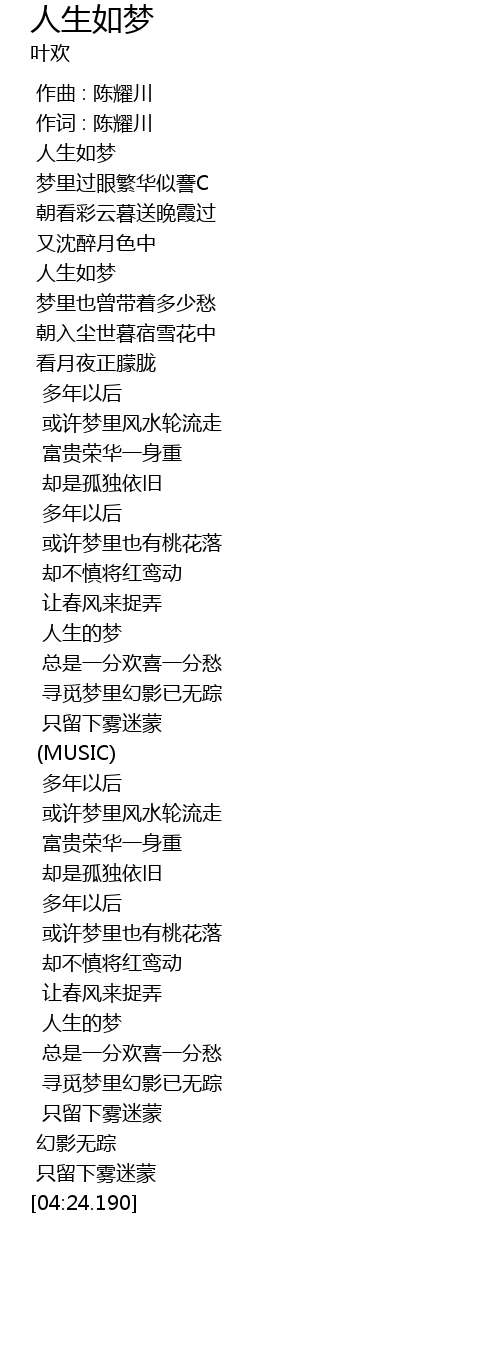 | [00:30.120] | mèng lǐ guò yǎn fán huá shì jiǎn C |