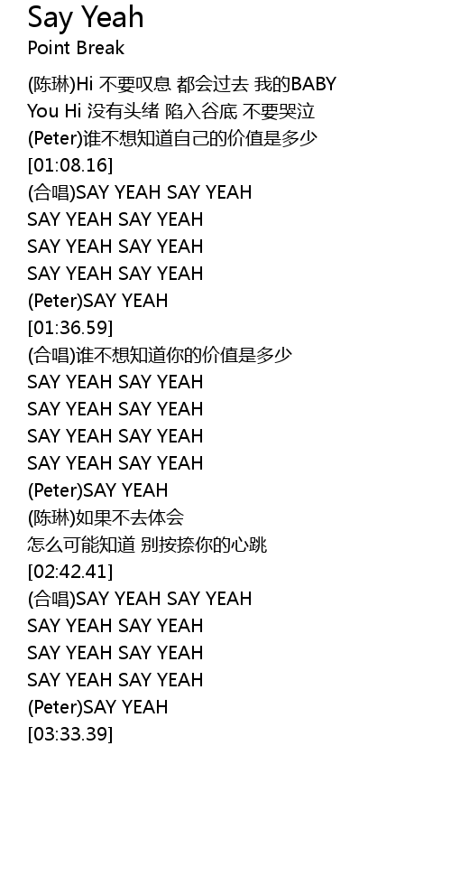 | [02:19.62] | SAY YEAH SAY YEAH |