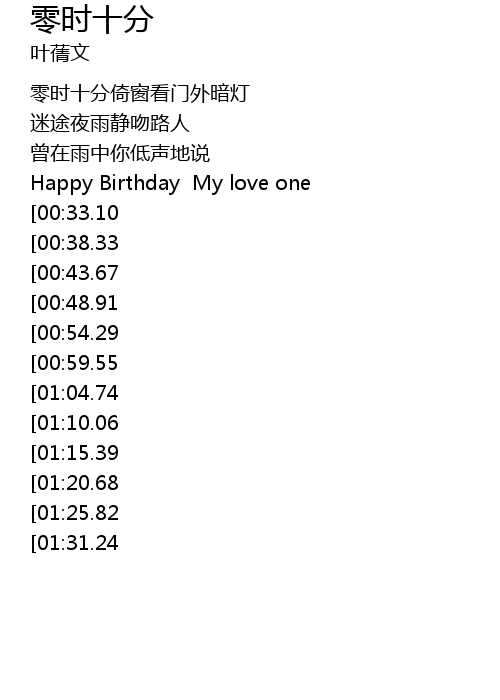 | [02:31.93][00:59.55] | 陪我庆祝今次生辰 |