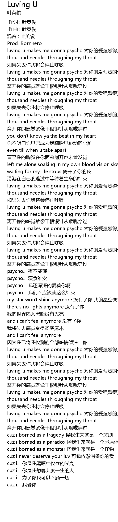 | [01:55.000] | luving u makes me gonna psycho dui ni de ai qiang lie de wu ke jiu yao |