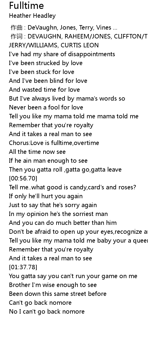 | [00:35.45] | Chorus: Love is fulltime, overtime |
