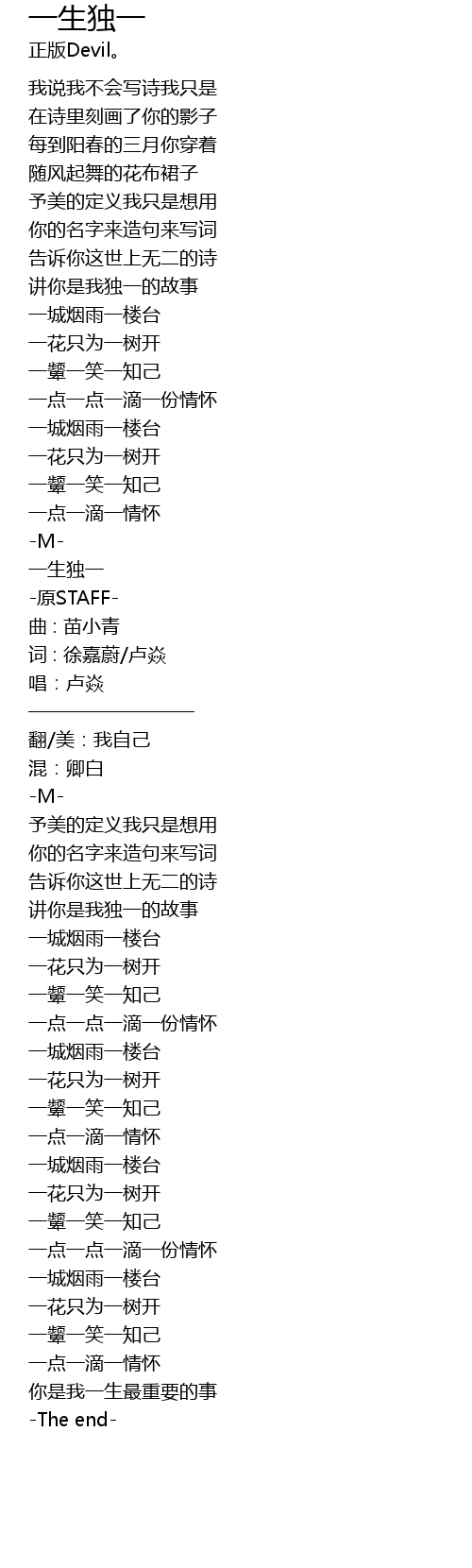 | [01:39.554] | 一生独一 |