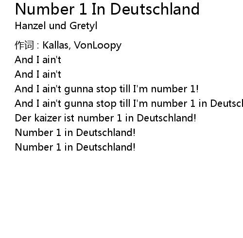 | And I ain' t gunna stop till I' m number 1 in Deutschland! | |