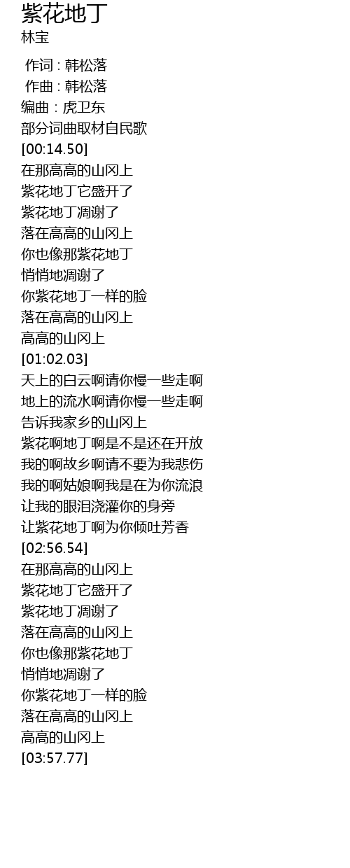 | [03:30.59] | 你也像那紫花地丁 |