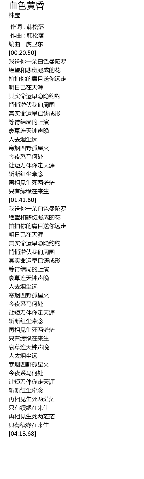 | [02:04.23] | 我送你一朵白色曼陀罗 |
