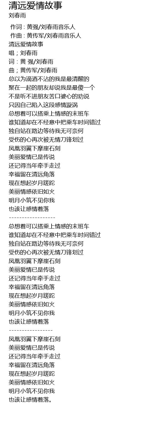 | [00:00.000] | 作词 : 黄强/刘春雨音乐人 |
