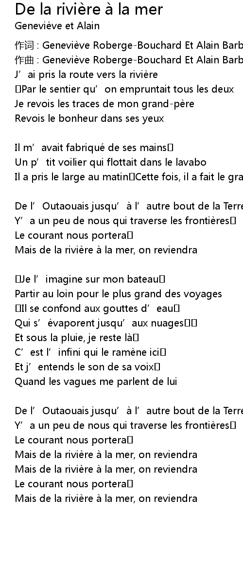 | Song | De la rivière à la mer |