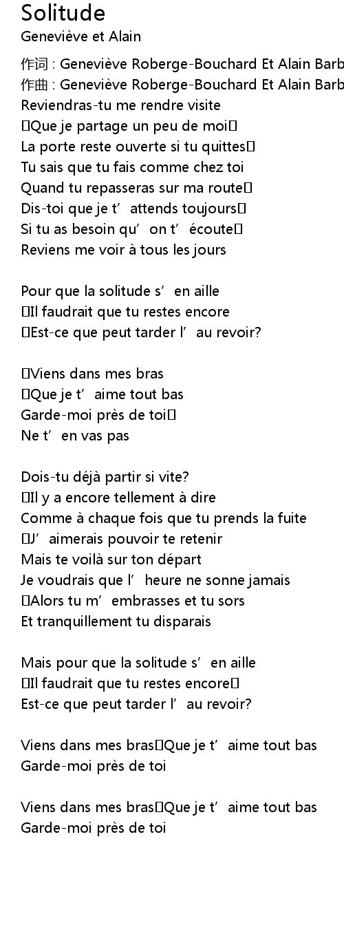 | 作词 : Geneviève Roberge-Bouchard Et Alain Barbeau | |
